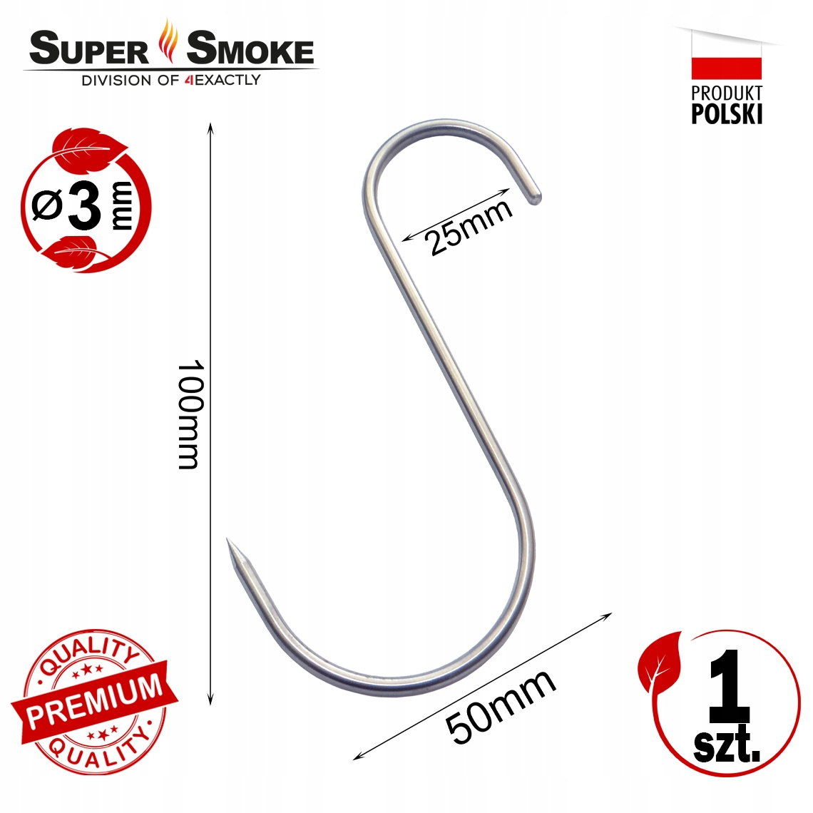Hak Wędzarniczy Super Smoke typu "S" 3mm 10cm do mięs i wędlin