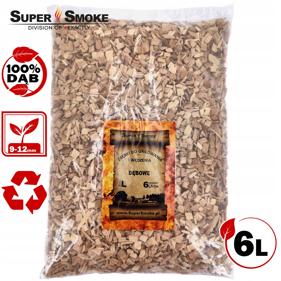 Zrębki Wędzarnicze Super Smoke DĄB KL-10 (9-12mm) Large 6 Litrów