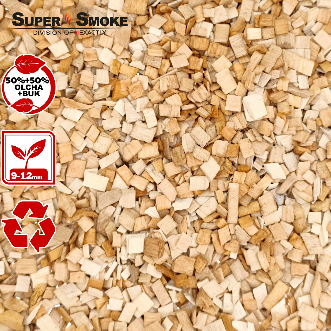 Zrębki Wędzarnicze Super Smoke OLCHA+BUK KL-10 (9-12mm) Large 4L Doypack Kraft