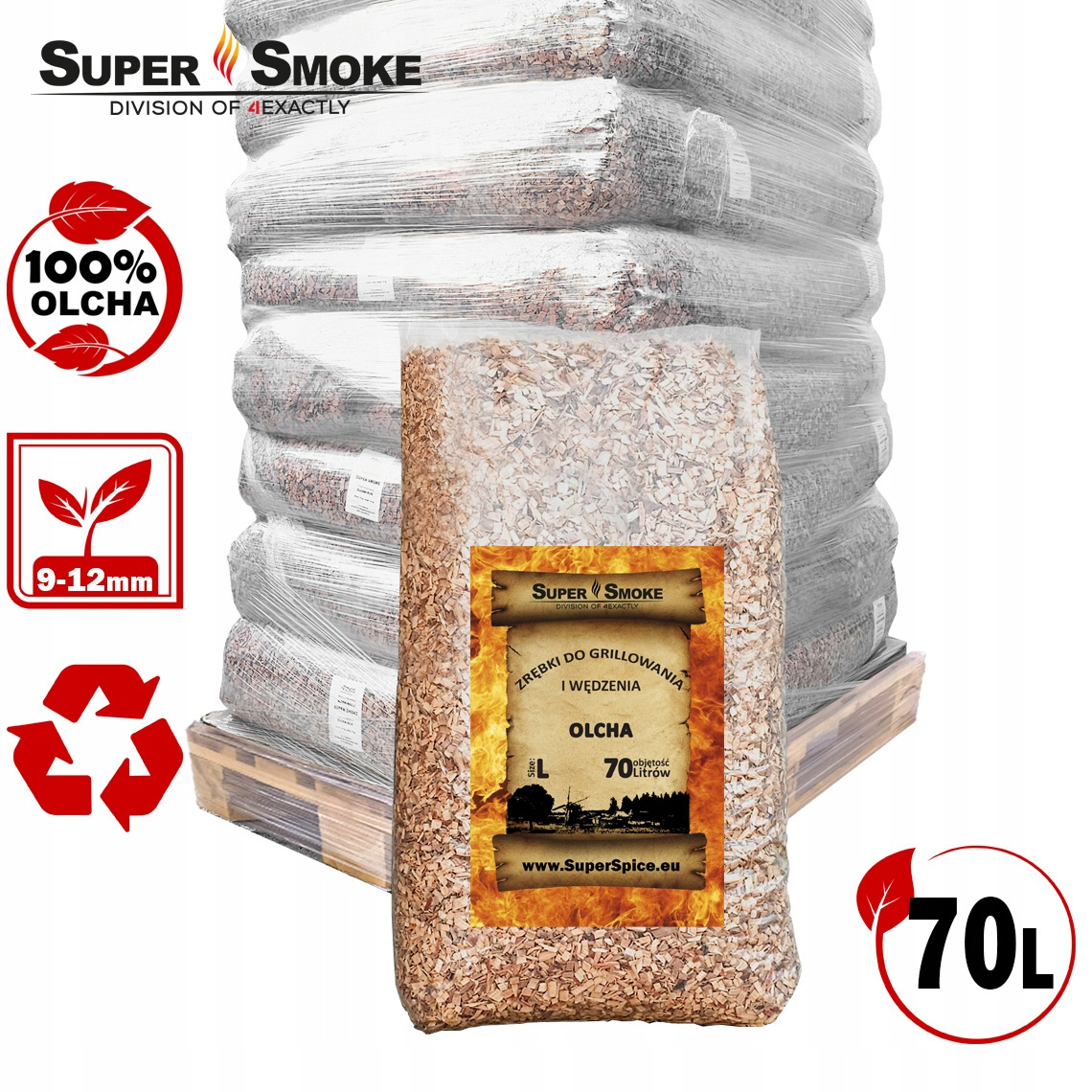 Zrębki Wędzarnicze Super Smoke OLCHA KL-10 (9-12mm) Large 70 Litrów