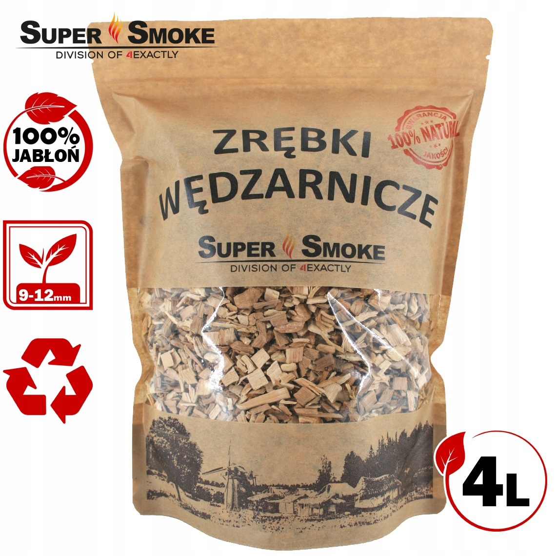Zrębki Wędzarnicze Super Smoke JABŁOŃ KL-10 (9-12mm) Large 4L Doypack Kraft